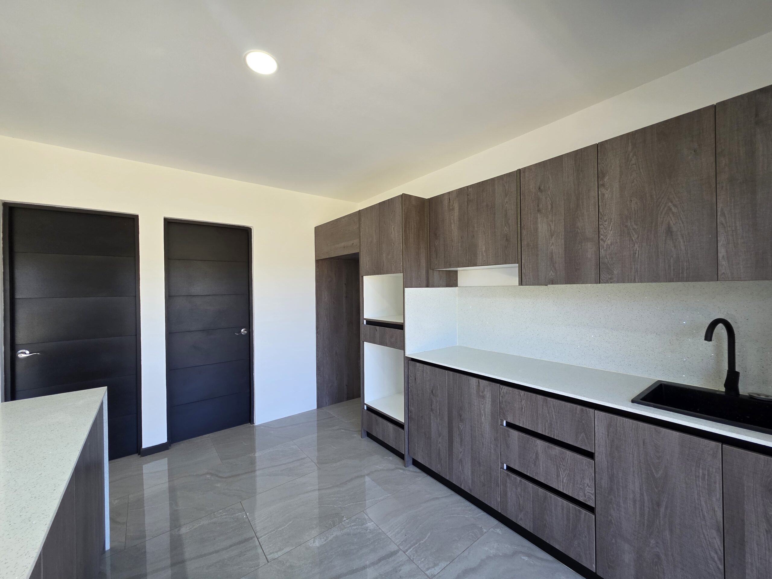 Cocina con muebles de melamina y sobres de cuarzo