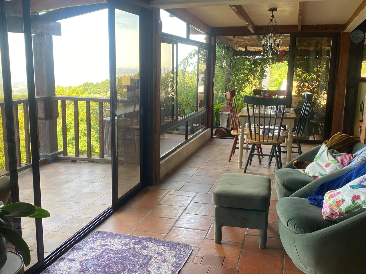 La propiedad ha sido cuidadosamente reforestada con árboles nativos y frutales como nísperos, moras, frambuesas y limones. Un ambiente vivo donde es común observar colibríes y disfrutar de la biodiversidad.